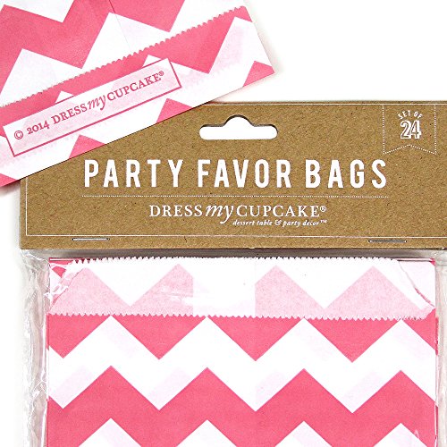 Dress My Cupcake 24-Pack Party Favor Bags, Chevron, Bubblegum Pink