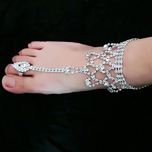 -. Feature : Quantity: 1PC. / Material: Silver,Rhinestone / Type: Anklets. / Length: 28cm. / Weight: 24g.