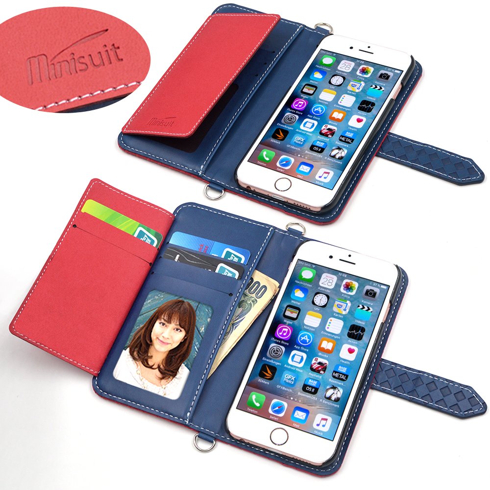 ※ Product name: va-10j case VAIO Phone VA-10J case notebook type va-10j cover va-10j notebook case PU leather material with strap Stand function with card holder Minisuit series Type E Lucky red × blue / all six colors