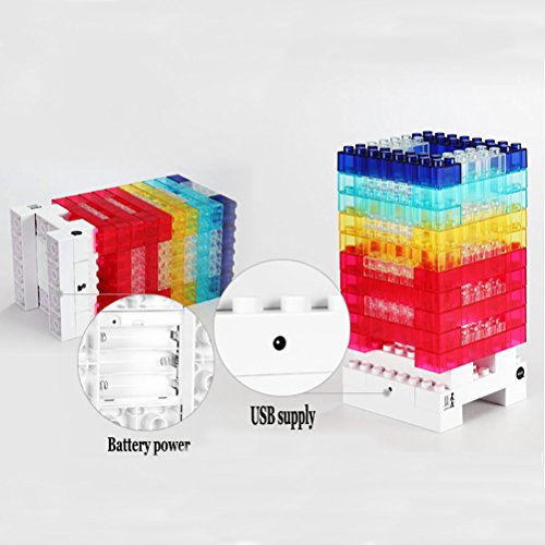 VIVISKY CREATIVE DIY TOY BRICKS LIGHT DECORATIVE LIGHTING TETRIS LIGHT BUILDING BLOCK NIGHTLIGHT AND A AMAZING PUZZLE GAME ,3-LEVEL DIMMABLE TOUCH SWITCH LED LAMP ,POWER BY USB OR AA BATTERY (76PCS)