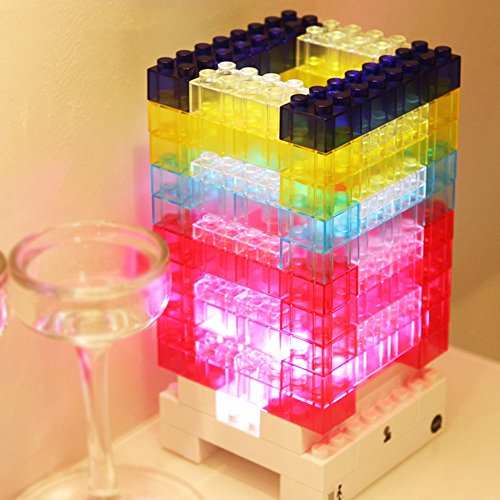 VIVISKY Creative DIY Toy Bricks Light Decorative Lighting Tetris light Building block Nightlight and a Amazing Puzzle Game ,3-level Dimmable Touch Switch LED Lamp ,Power by USB Or AA Battery (76PCS)