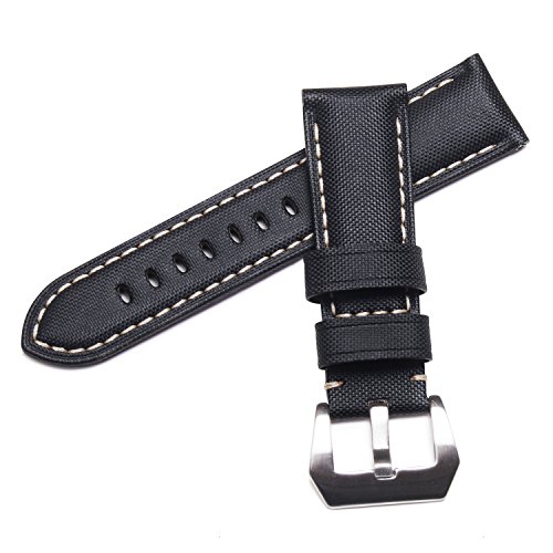 -. Feature : USA Seller / GENUINE durable synthetic sailcloth for the 'canvas' effect / PADDED for comfort / QUALITY stainless-steel buckle with spring-bars included / SIZE 20mm at lug