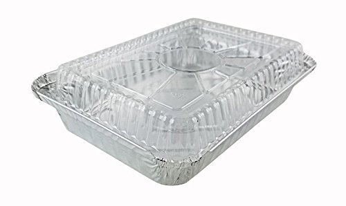 Product Description 1-1/2 lb DEEP RECTANGULAR (OBLONG) FOIL TAKE-OUT PANS WITH PLASTIC DOME LID 100 SETS (pack of 50) PRODUCT FEATURES: 1.5 lb. Shallow Rectangular (Oblong) Foil Take-Out Pans With plastic dome Lids 50 Foil Pans With 50 Matching plastic Lids Perfect Size For Carry Out, Pastas, Dinners, Chinese Take-Out Dimensions: 8.5" L x 6" W x 1.5" D 23.0 Ounce Capacity, Made with Heavy 30 Gauge Aluminum Sturdy Pans, Will Not Easily Crush or Bend Top Rim of Pan Crimps Around plastic Lids Keeping Food Sealed We Sell the Best Quality Foil Pans at the Best Price! Used by Many High-End Restaurants and Caterers Across America. 0