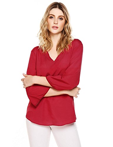 -. Feature : Deep v-neck, lace patchwork, half sleeve / Elegant lace chiffon blouse, wear casual or match with black pants to complete office style / Suitable for casual, outdoor, work, travel, party / Hand wash recommend, ironing with press cloth / Please refer to size measurement at the 7th picture (NOT amazon size chart)