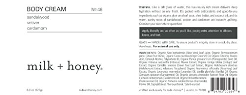 Body Cream No.46 is a warm, earthy mix of sandalwood, vetiver, and cardamom. The scent is instantly uplifting - but that's not all. This blend is packed with antioxidants and a hydrating trio of organic aloe vera leaf juice, shea fruit butter, and virgin coconut oil.