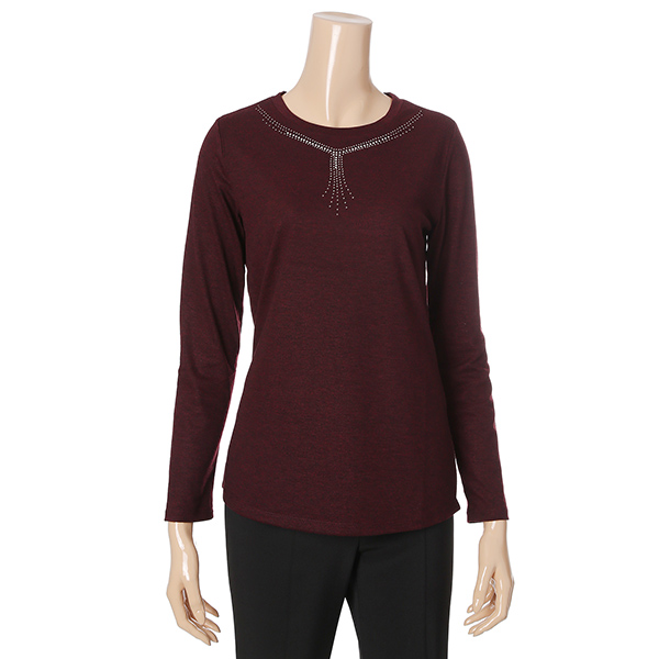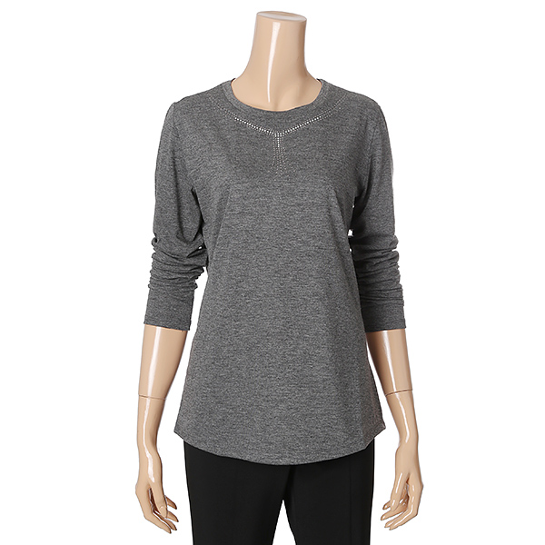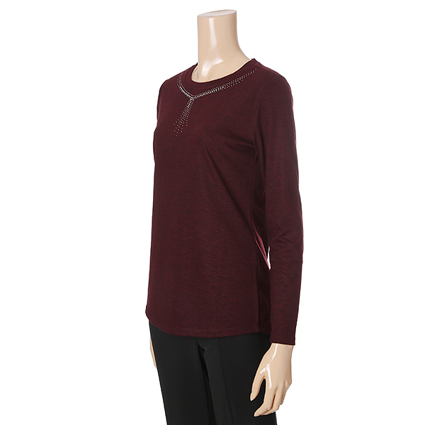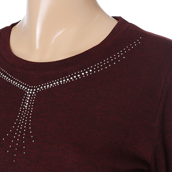 라운드네크라인에 반짝이 포인트를 주어 목선이 길어보이는 신축성좋은 기본 스판 티셔츠아이템.