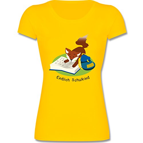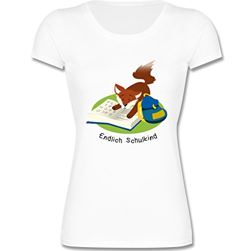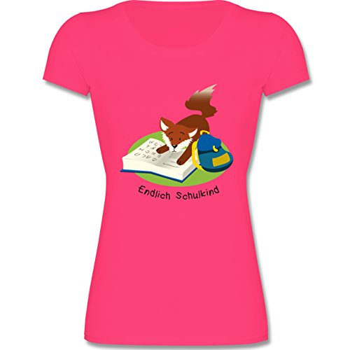 -. Title : Einschulung - Endlich Schulkind! Lesender Fuchs - tailliertes Kinder T-Shirt für Mädchen mit Rundhalsausschnitt