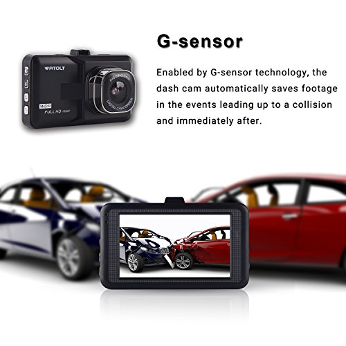 Watolt Dash Cam - 3.0" Large LCD Dash Camera Recorder for Cars Trucks, with Auto On Off, Loop Recording, and G-Sensor Emergency Recording