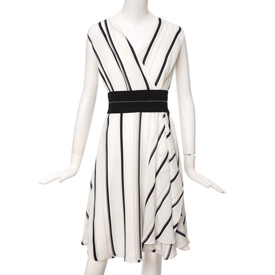KL, 플레어라인이 여성스러운 스트라이프 브이넥 원피스입니다