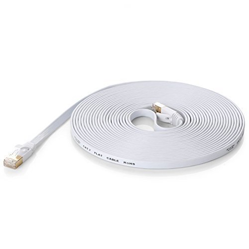 Flat Ethernet cable is super slim and flexible when run under the carpet or bent in the plane of its thin cross-section such as doors, rotating arms, drawers etc