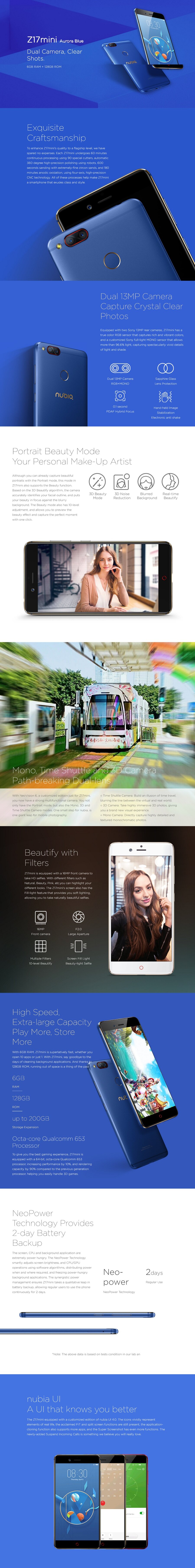 Product details of ZTE Nubia Z17 Mini - 6GB RAM + 128ROM - One Year Nubia Malaysia Warranty