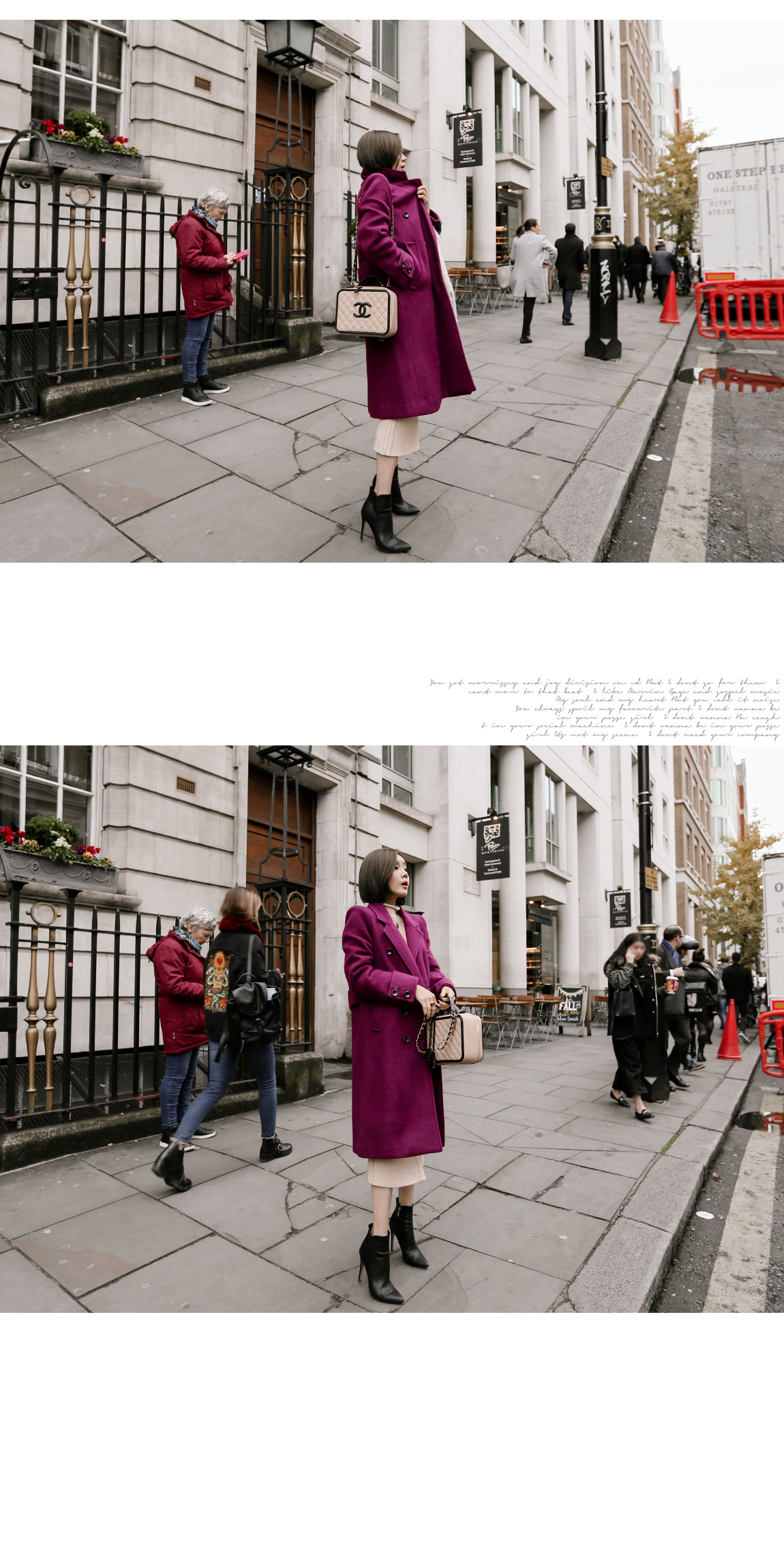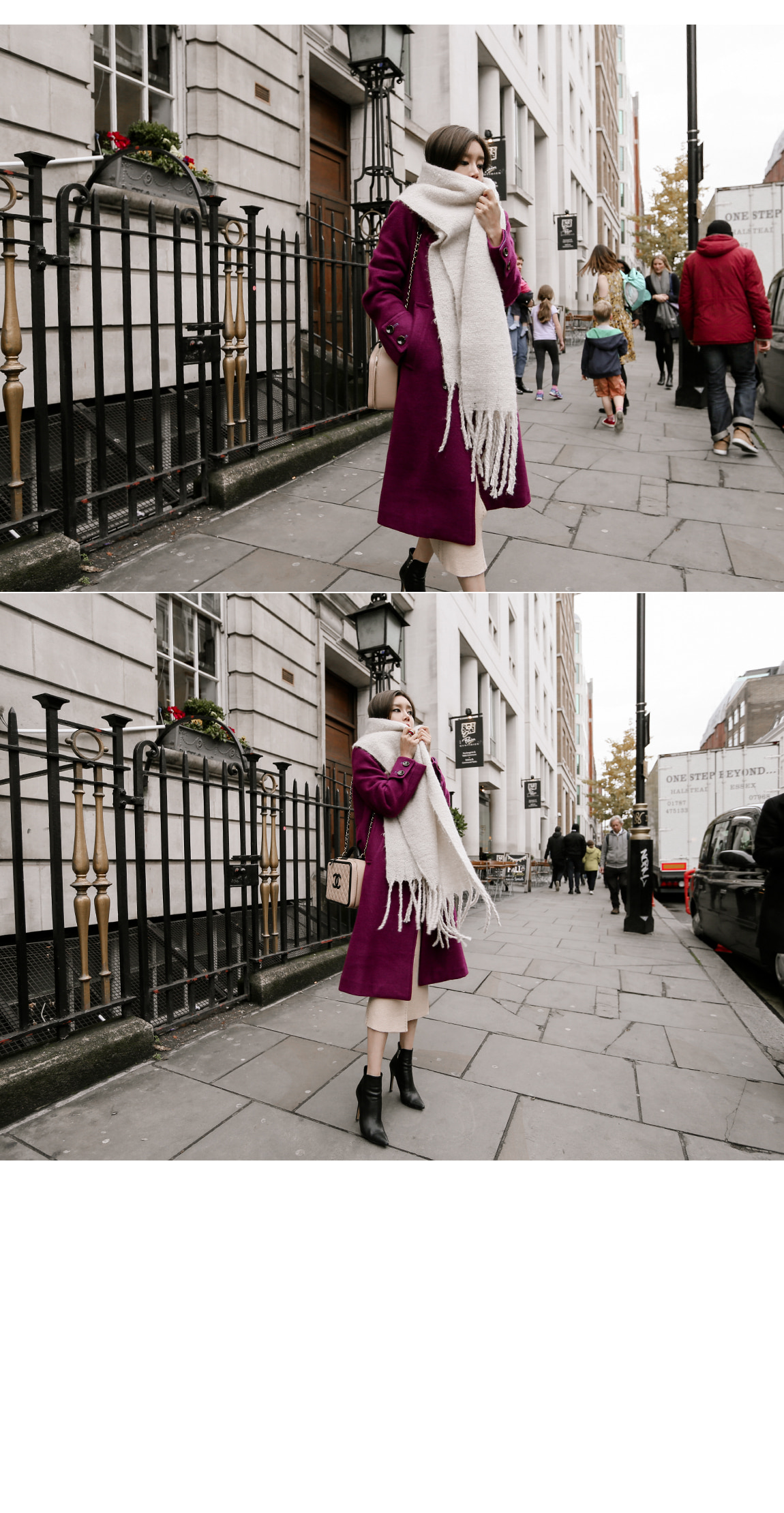 숄더에 패드가 내장되어있어 전체적인 밸런스를 잡아줘요 벨트가 세트로 구성되어있어 슬림한 라인감을 연출해줘요