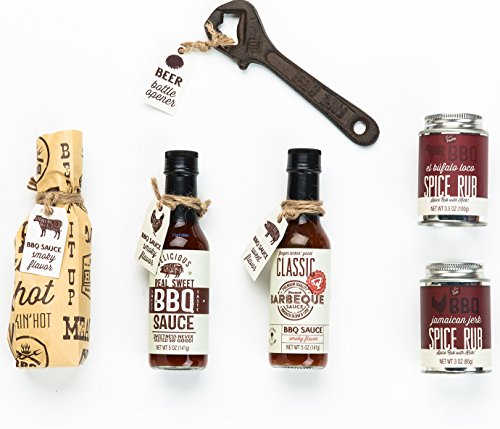 "The Big BBQ” A Thoughtfully Box Gift for Any Grill Master With Dry Rubbed Seasonings & BBQ Sauces, & Handy Beer Bottle Opener. Chef & BBQ...