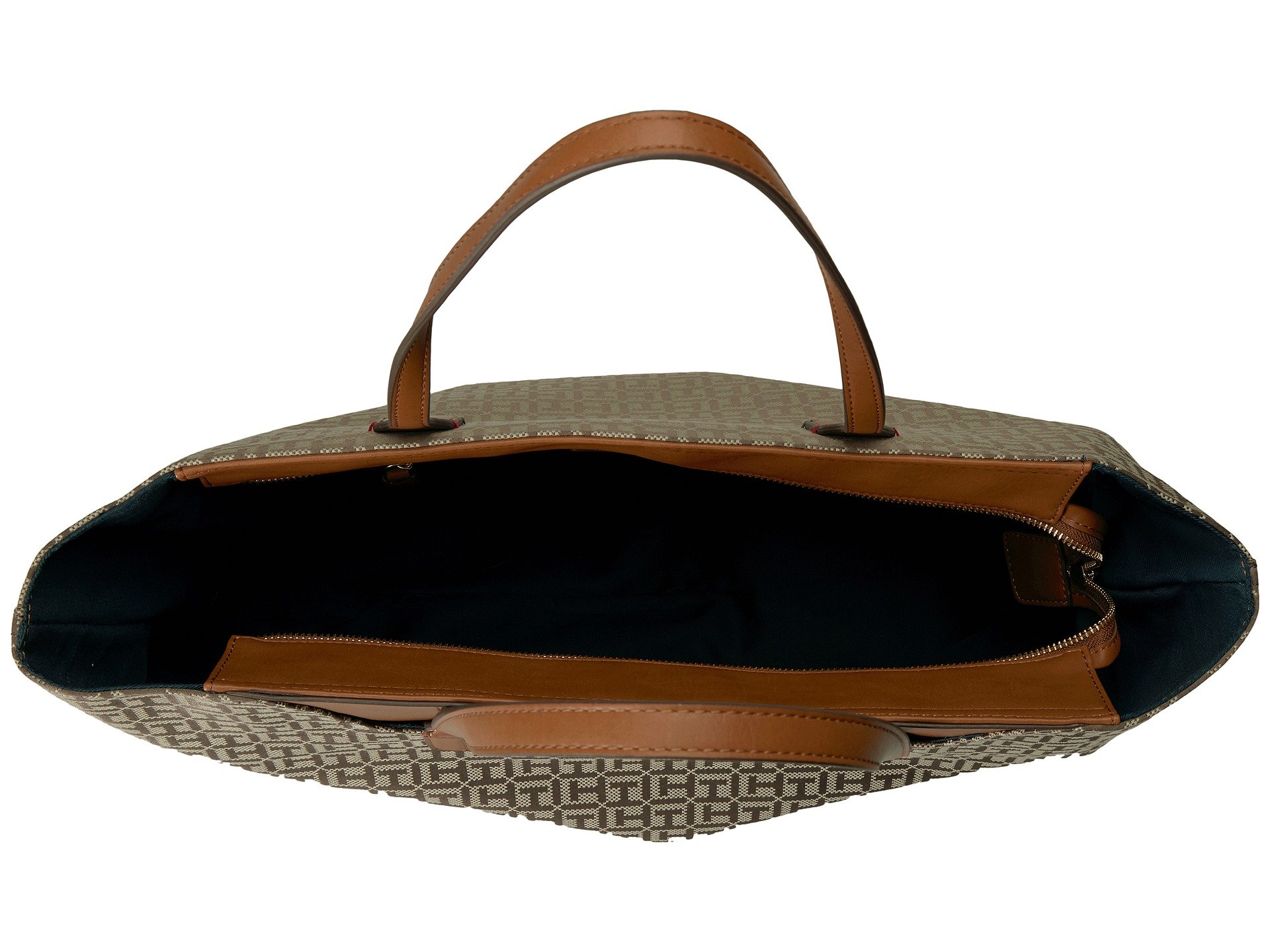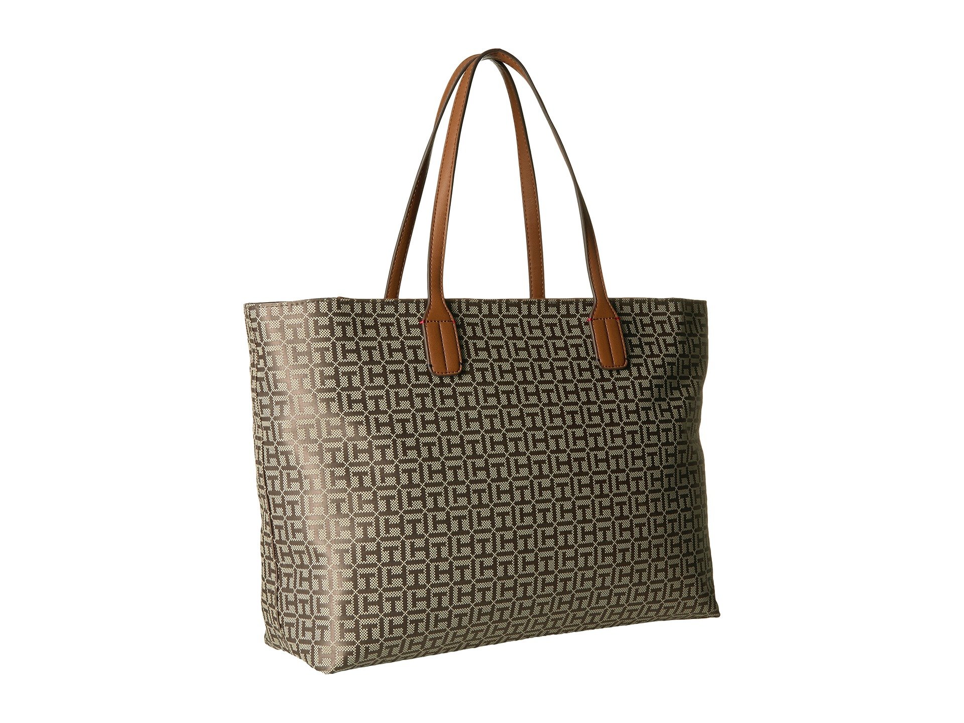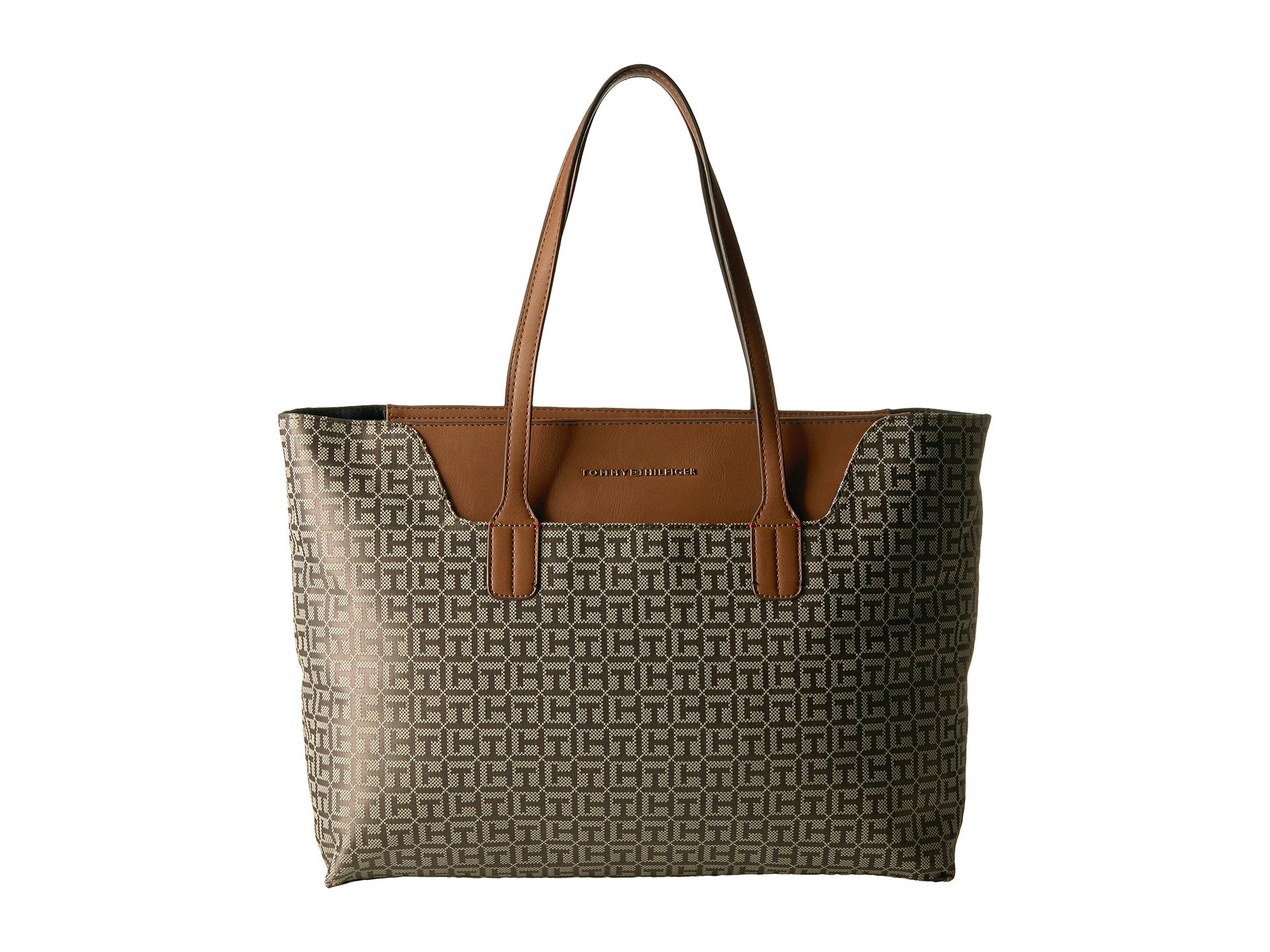 | Product Information SKU: #8950121You're totally going to love this Tommy Hilfiger? handbag!Made of signature brand jacquard with faux-leather trim. Zipper closure. Two flat carrying handles. Exterior features a slip pocket at front and brand name detail. Flat base. Lined interior features one zip and two slip pockets. Imported.This product may have a manufacturer's warranty. Please visit the manufacturer's website or contact us at warranty@support.zappos.com for full manufacturer warranty details.Measurements: Bottom Width: 16 in Depth: 5 1?2 in Height: 12 in Strap Length: 25 in Strap Drop: 8 1?2 in Weight: 2 lbs 5 oz |