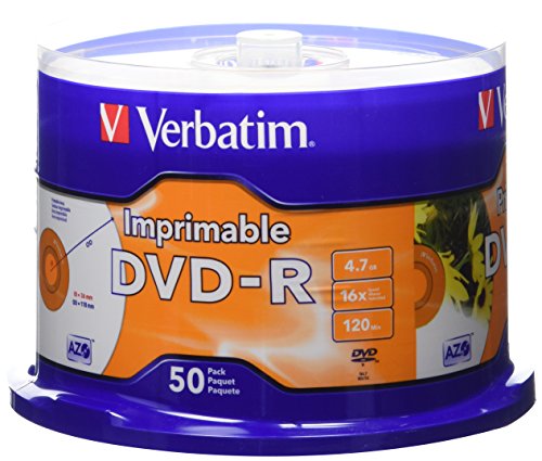 Verbatim 4.7GB up to 16x White Inkjet Printable Recordable Disc DVD-R, 50-Disc Spindle 95137