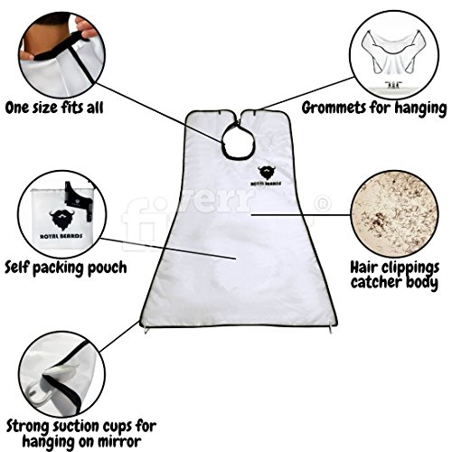 ROYAL BEARDS - The Original Beard Bib - Beard Shaving Bib & Shaper Tool Set - Hair Clippings Catcher & Grooming Cape Apron - Easy Clean Up & a...