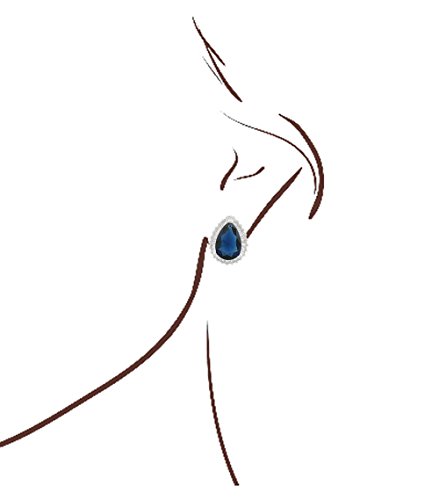 Length: 0.67 in Width: 0.53 in; JanKuo Jewelry Rhodium Plated Blue Sapphire Color Teardrop Baguette Halo Clip On Earrings in Gift Box, COLOR MAY VARY FOR THE FREE GIFT BOX.