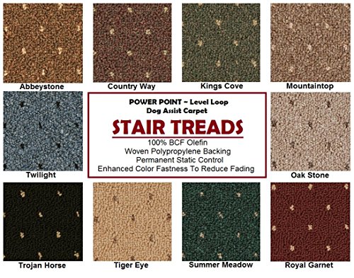 Studio : Koeckritz Rugs Publisher : Koeckritz Rugs Product Description 10 - Colors to choose from. Quality, Stylish Carpet Stair Treads extend the life of your high traffic hardwood stairs. Reduce slips/increase traction (your treads must be attached securely to your stairs). Great for pets and pet owners. Helps your dog easily navigate your slippery staircase. Set includes 13 carpet stair treads PLUS one roll of double-sided carpet tape for easy, do-it-yourself installation. Each tread is bound around the edges. You may remove your treads for cleaning and re-attach them when you are done. Add a fresh new look to your stairs today with new carpet stair treads. **Please Note colors may vary slightly in person due to flash photography and differences in monitor settings. Each rug/carpet is manufactured with the same colors as pictured; however they can be manufactured from slightly different "dye lots". Meaning when the yarn is dyed it can vary in shade ever so slightly. SHIPPING: If you have any additional questions please contact our customer service department. ----------------------------------------------------- 0