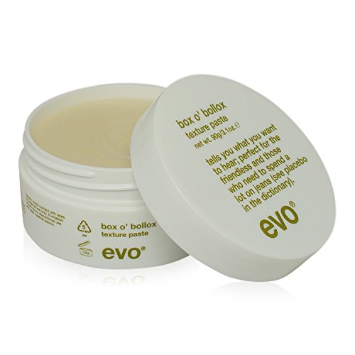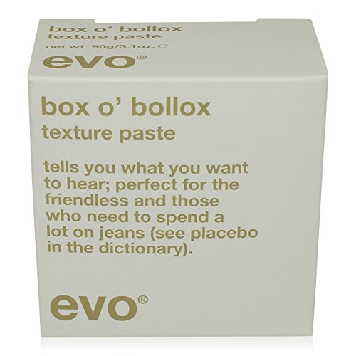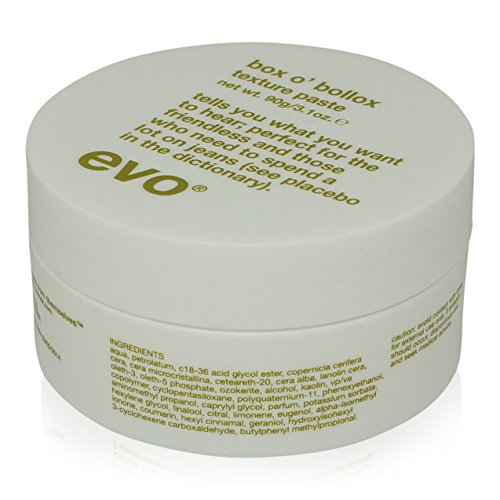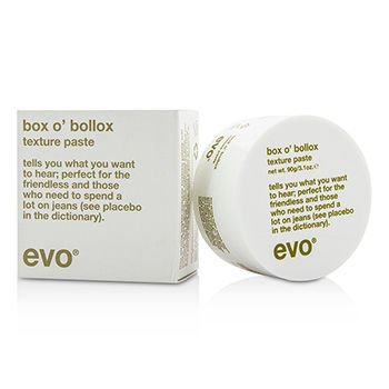 ReleaseDate : 2016-11-16 Studio : Evo Publisher : Evo Binding : Health and Beauty Product Description Evo box o' bollox texture paste is a texturizing paste that provides strong hold and an extremely matte finish. A paste that provides dry texture and bulk with an ultra strong hold and a natural looking matte finish. This product is water soluble and adds support and separation and strong hold under any conditions. 0