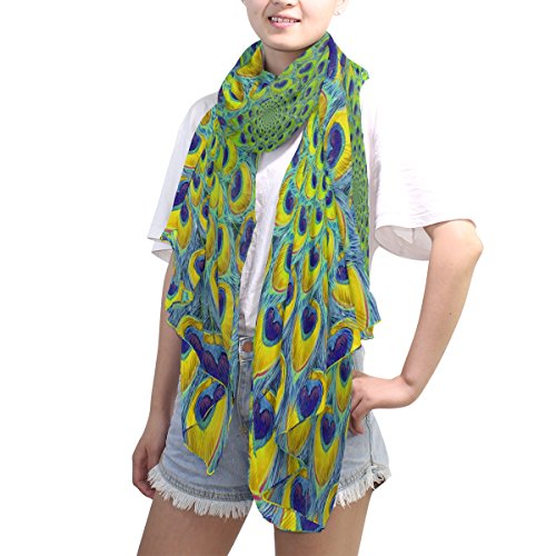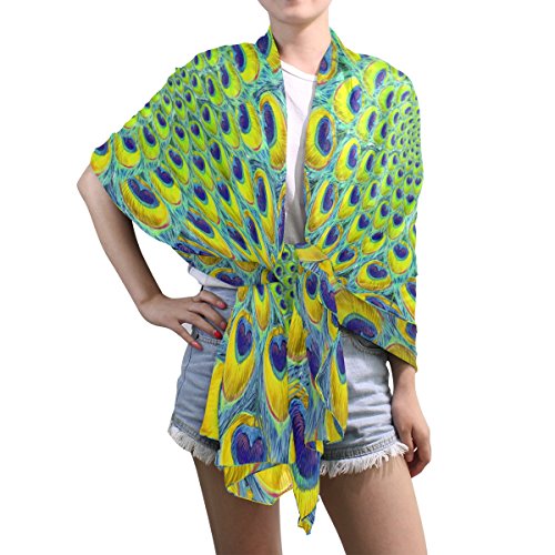 (ALAZA)/Accessories/Cold Weather Accessories/DIRECT FROM USA/ALAZA Fashion Vintage Peacock Feather Mandala Chiffon Silk Long Scarf Shawl Wrap