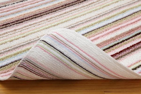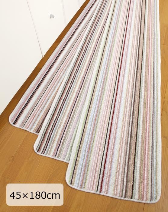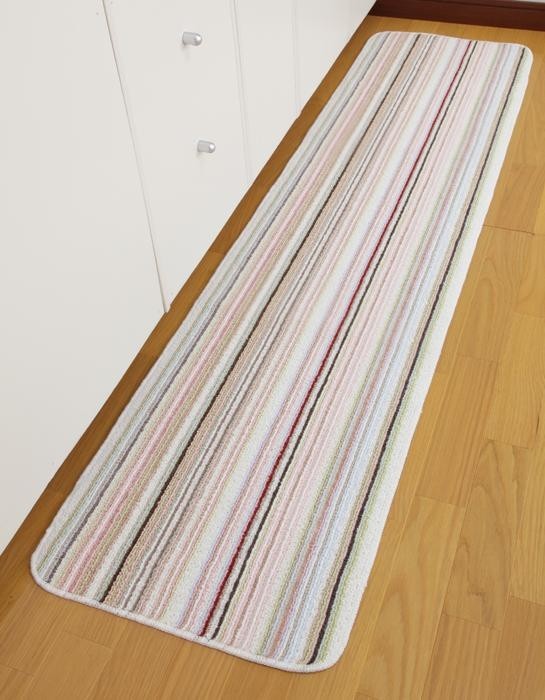| 幅180cmのロングサイズ☆カラフルでおしゃれなボーダー柄のキッチンマットです。裏面に滑りにくい加工を施しているので、横ズレしにくいです!! |