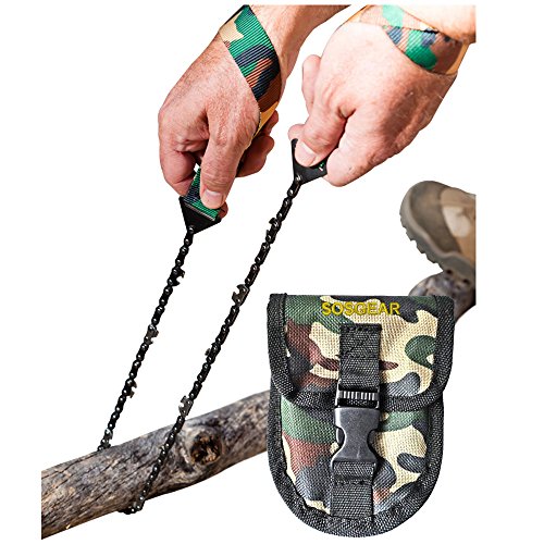 -. Title : Pocket Chainsaw by SOS Gear, Emergency Survival Gear Hand Saw with Camo Pouch, Snap Closure and Belt Loop for Campers, Hunters, Fisherman and Backpackers