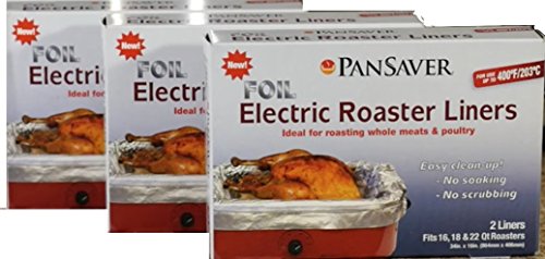 Pansaver Foil Electric Roaster Liners, 3 Box Bundle (6 Liners for Roasters). Fits 16, 18 and 22 Quart Roasters. Best Liners for Roasting Whole Meats.