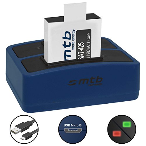 Mtb more energy 1-4 Akkus + Dual-Ladegerat (USB) fur Rollei Actioncam 425, 426 (4K 2160p) (inkl. Micro-USB-Kabel)