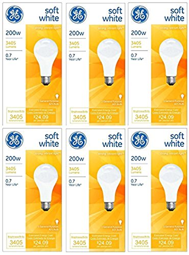 GE 11585-4 A21 Incandescent Soft White Light Bulb, 200-Watt, 6-Pack
