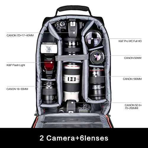 Backpack Size(L x W x H: 11.81*6.3*16.54” ). Compatible with Nikon D500 D5500 D3200 D7200 D7100 D5100 D3100 D5300 D5200 D5300 D3400 D3300 COOLPIX P900 P610 P600 P530 P520 P510 L840 L830 L820 L810 L330 L310, DL24-500 Digital Camera, Canon EOS T6, T6i, T6s, T5, T5i, T4i, SL1, 80D, 70D and more DSLR.