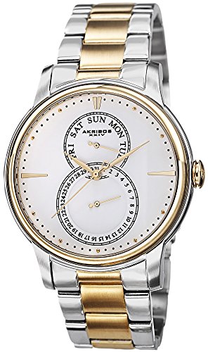 -. Title : Akribos XXIV Men's AK728TTG Ultimate Multifunction White Dial Two-tone Stainless Steel Bracelet Watch