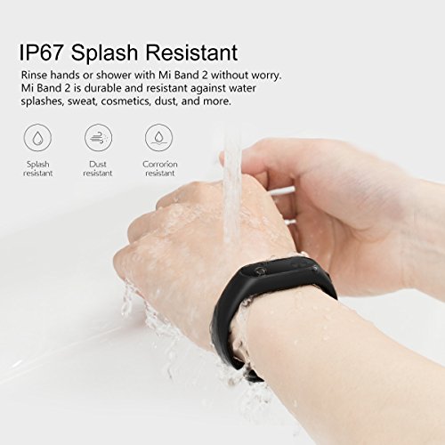 - IP67 Waterproof Wristband Watch: MI Band 2 is durable and resistant against water splashes, sweat, cosmetics, dust, and more. No worry for daily activities, even when rinsing hands or shower