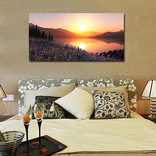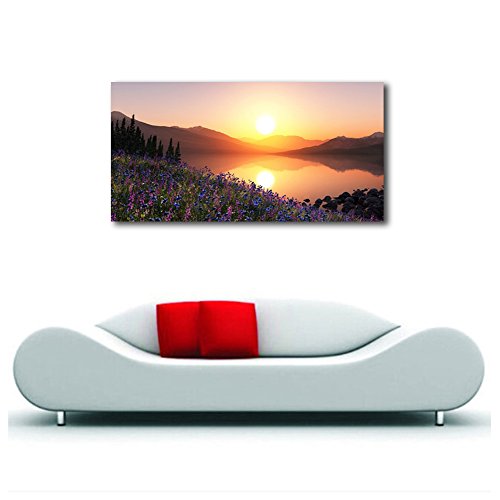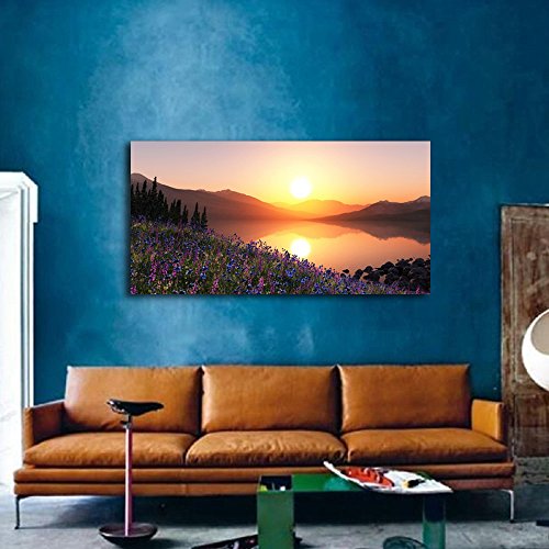 -. Title : Gardenia Art - Lavender by Lake at Sunrise Canvas P.R.Ints Modern Wall Art Paintings Mountain and Lakes Scenery Artwork for Room Decoration,48x24 inch, unframed