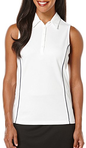 Effortless style with features to match the beautiful back ruching detail on the pga tour women's golf performance sleeveless air flux polo shirt adds a feminine touch while sun flux upf 50 protects from the sun's harmful rays. Easy care makes polo maintenance quick, air flux ventilation innovation gives ultimate comfort, all while dri flux moisture-wicking keeps you cool and dry.Feature