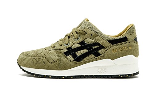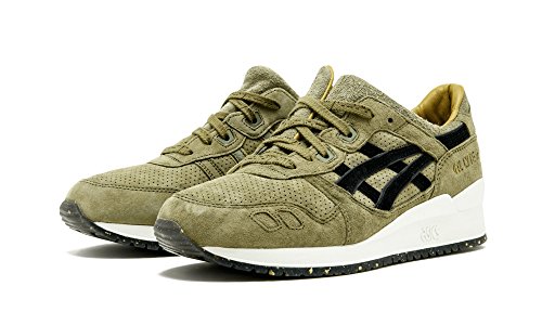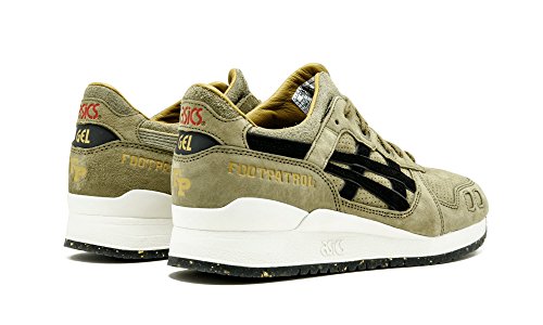 Binding : Apparel Product Description This super clean edition of the ASICS Gel-Lyte III comes compliments of UK sneaker retailer Footpatrol, who outfit the classic split-tongued runner in a premium olive green nubuck upper with black accents and a speckled outsole. 0