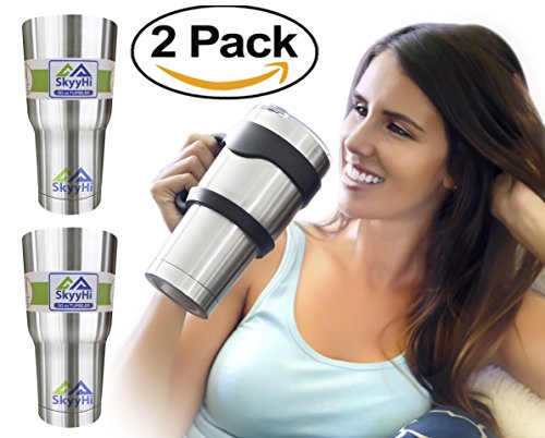 - ★ GET 2X YOUR MONEY'S WORTH – Don't overpay for the 'name brands'. The SkyyHi tumbler is just as good if not better. Now upgraded with sliding lid to prevent leaks! 2 pack (8-piece set, no handle) double wall vacuum insulated tumbler maximizes temperature retention - keeps ice cold for 24 to 36 hours sweat-free