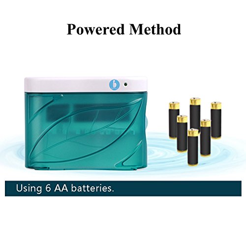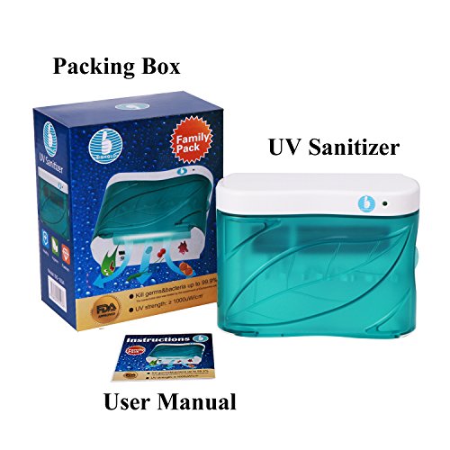 - Material: ABS (FDA Approved), anti-bacteria and deodorization material. Extra long >8000 hrs UV tube life. Size:14*10.6*6.4 cm (5.5*4.2*2.5 inch), powered by 6 AA batteries (not included).