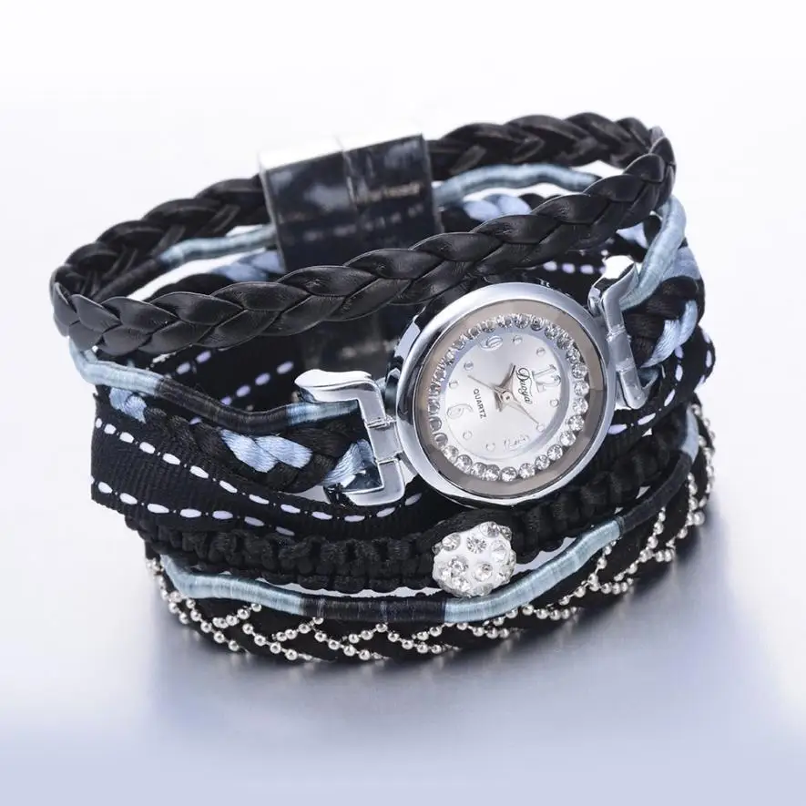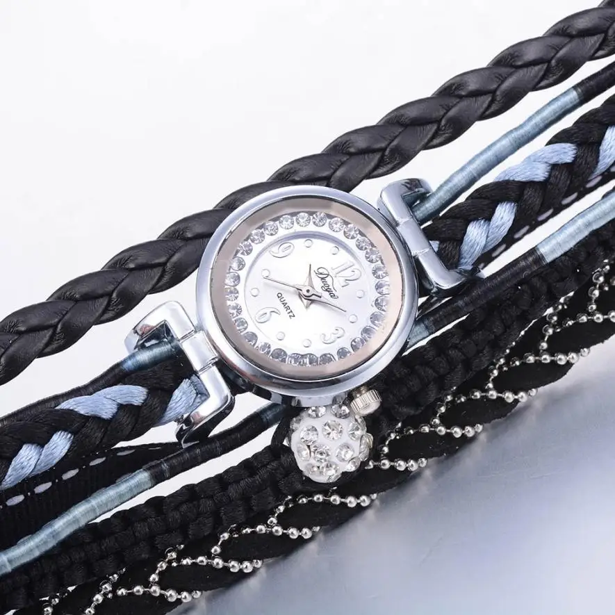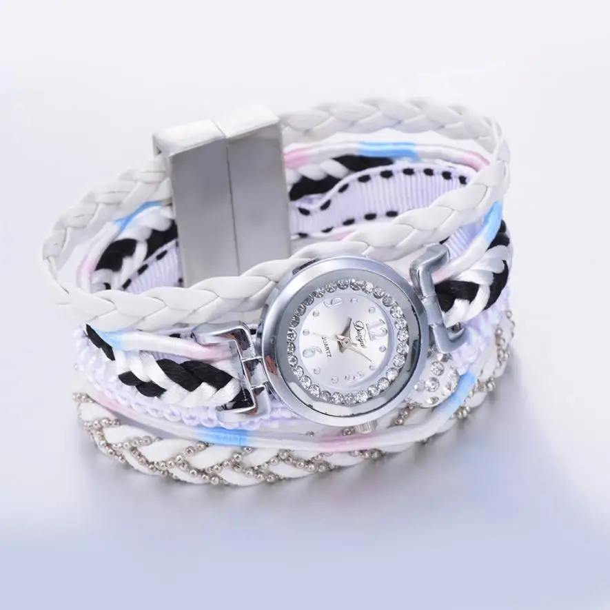 | [해외] Duoya 니트 직조 로프 밴드 2017 새로운 높은 품질의 고급 크리스탈 다이아몬드 시계 팔찌 시계 Montre 팜므 |