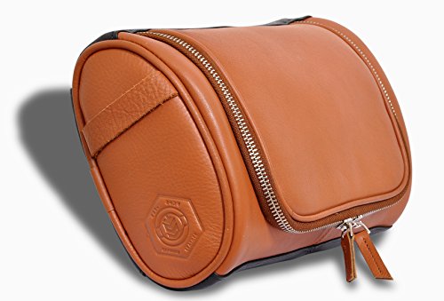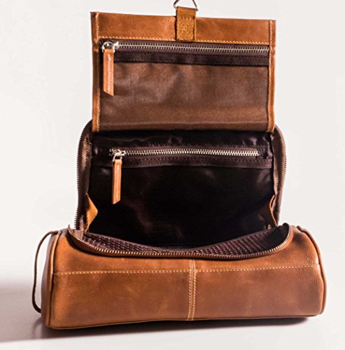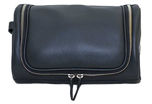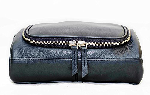 IFZA Hanging Leather Toiletry Kit. 100% Leather Shaving bag, Dopp Kit for Men Women Travel Toiletry Bag - Navy