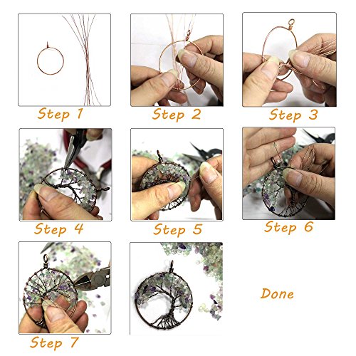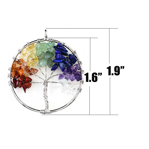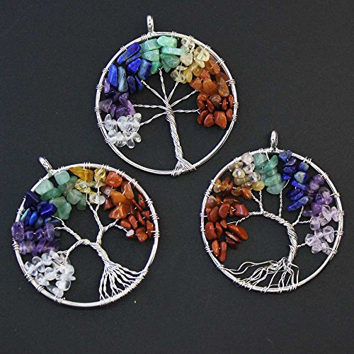 Wholesale Handmade Wire 7 Chakra Crystal Tree of Life Pendants Healing Reiki Charms Bulk for Jewelry Making (1.7" Dia)