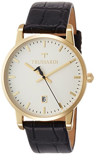 -. Title : [トラサルディ]TRUSSARDI 腕時計 T-GENUS 40mm アイボリー文字盤 ステンレススチール(イエローゴールドPVD加工) ブラックレザー メンズ R2451113003 メンズ 【正規輸入品】