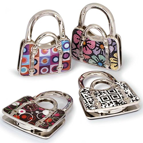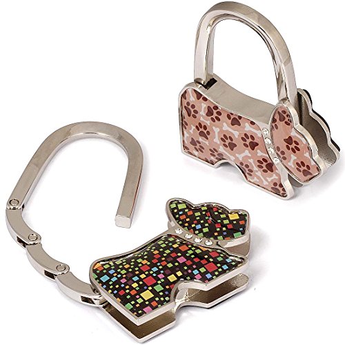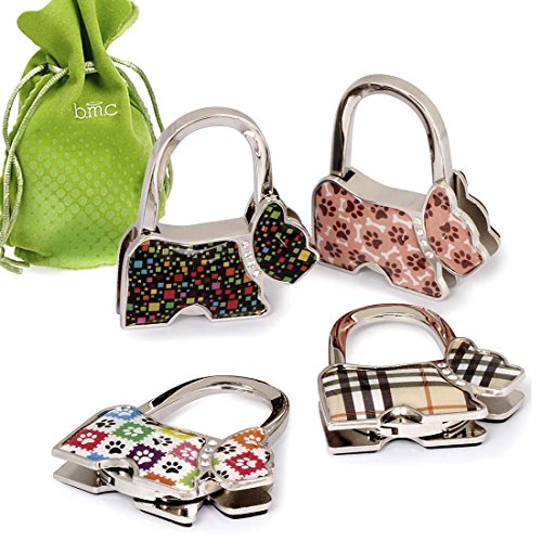 Studio : Bundle Monster Publisher : Bundle Monster Product Description Never let your purse touch the dirty floor with these fun, folding bag hangers. Choose from (5) different sets: Scotty Dogs, Purses, Polish Addicts, Hawaii Island Theme, and Swirled Heart. All hangers are a J-hook style and hang off the side of a table and will not slide off with a rubber backing. A double notch, locking system helps lock the folding hook in place when you are not using it. These hangers all constructed from alloy metal and colored resin. *NOTE*: Due to differences between monitor displays, actual color may vary slightly from image. b.m.c is a registered trademark of Remi Collections LLC and is exclusively distributed by Bundle Monster. The b.m.c trademark is protected by US Trademark Law. 0