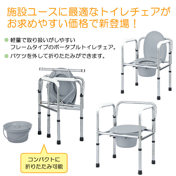 ●軽量で取り扱いがしやすいフレームタイプのポータブルトイレチェア。
