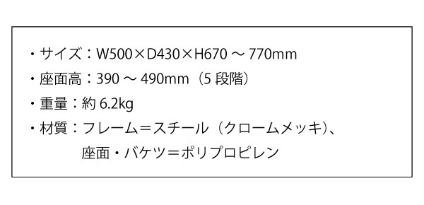 ●材質:フレーム=スチール(クロームメッキ)、座面・バケツ=ポリプロピレン