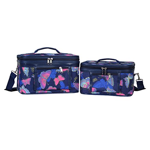 World Traveler Women's 2-Piece Cosmetic Case Set, Pink Butterfly