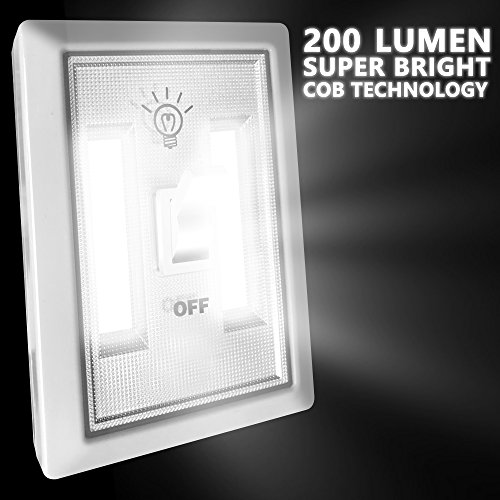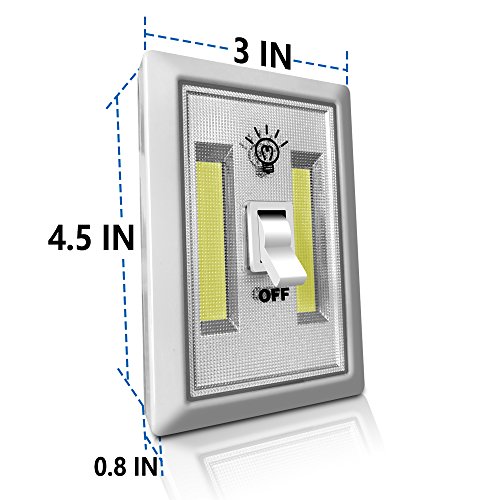 - Super Bright - Super bright LED wall light switch; Equipped with new COB LED technology, the COB Switch Light can output 200 lumens of intense light. It is perfect to keep the house around in blackout and nighttime use.
