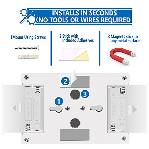 - Easy to Install - It comes with two double sided adhesive tape and magnetic base which makes installation a breeze. It can be attached to any flat surface in a horizontal or vertical position. It can also be easily detached for use in another location. Simply stick it to your desired flat surface and it’s ready for use. No need of tools or screws.