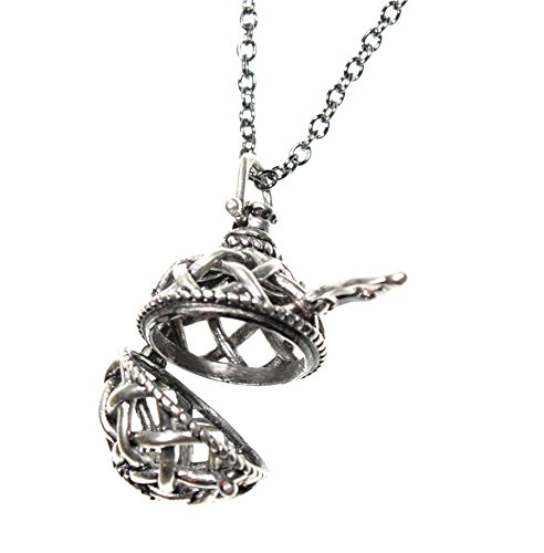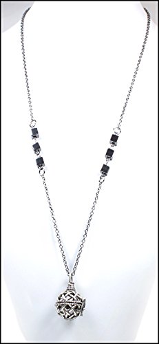 Woven round antiqued silvertone wish locket opens to store wishes and secrets. The 26 inch long chain fits over the head, no clasp needed. This unique locket comes in gift box, ready to send or to give.Feature
