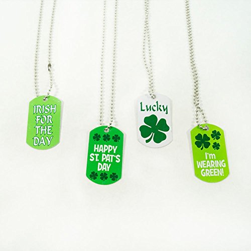 Metal St. Patty's Day Dog Tag Necklaces Irish Party Favors-12 pc