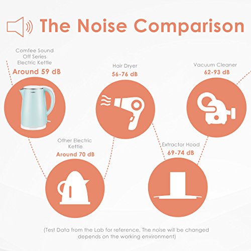 Unique Low Noise Electric Kettle: Unique Sound-Off design and double wall construction realized lower noise than other kettles